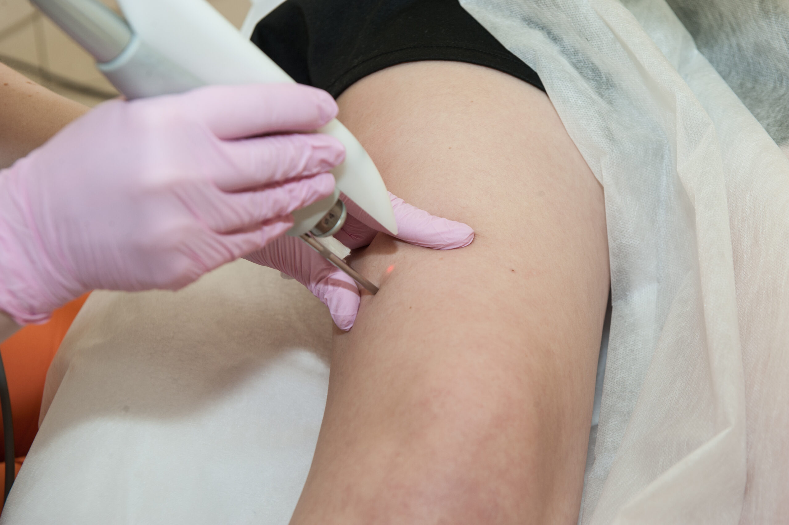 Vein therapies, or vascular laser treatments, are used for correcting the appearance of vein-related discoloration in the skin. Examples of this include port wine stains, spider veins, and rosacea. This treatment uses a specialized laser to break down targeted vessels.